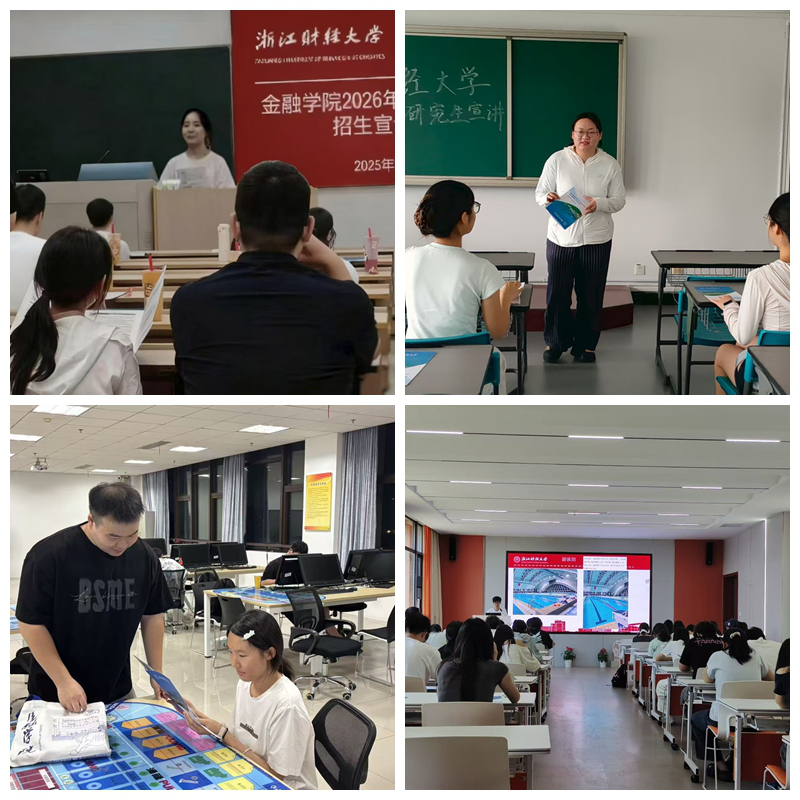 为进一步提升金融学院硕士研究生生源质量,帮助应届考生全面了解金融学院招生政策与学科优势,优化生源结构,持续拓展生源渠道,9月3日至9月25日,金融学院研究生宣讲队先后分赴安徽财经大学、浙江理工大学、嘉兴大学和杭州师范大学等高校开展2026年研究生招生专场宣讲活动,加强与省内外高校交流合作,吸引更多优秀学子报考。