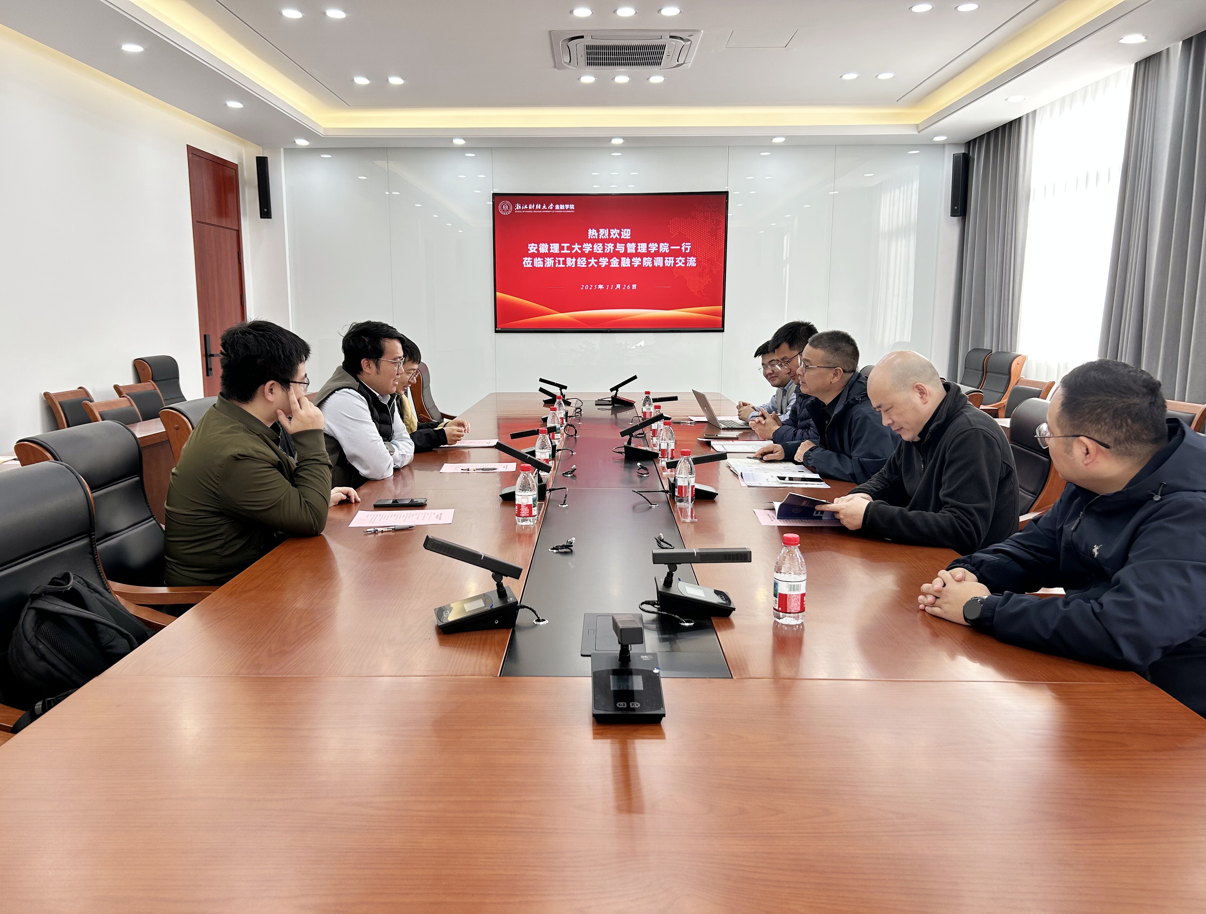 2025年11月26日,安徽理工大学经济与管理学院副院长荀守奎一行来我院调研交流。我院副院长金骋路热情接待了来访客人,会计学院财务会计系专任教师桂美增应邀参会。