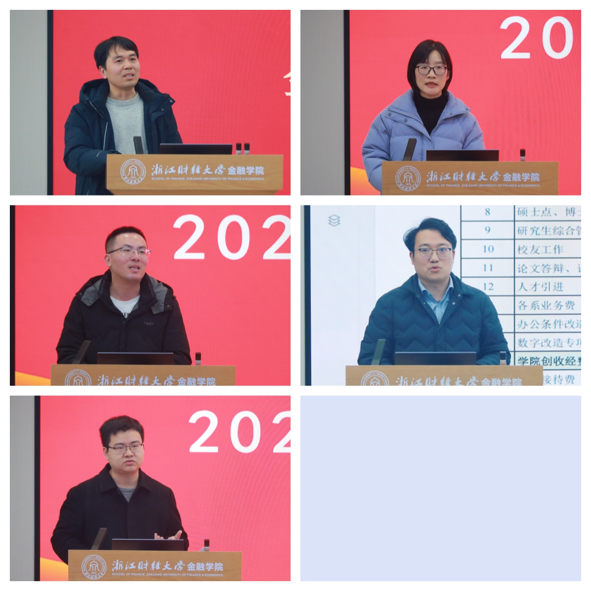会上,学院领导班子围绕近期各项重点工作进行了全面通报与细致部署。傅俊辉副院长介绍了盈阳金融科技学院近期工作开展情况与下一步计划;陈思佳副书记围绕期末学风建设、学生考研与就业等工作提出具体要求;林祺副院长针对2026年度国家课题申报与研究生招生工作进行动员布置;金骋路副院长通报了学院2026年预算编制情况,并就教职工考核与职称评审相关办法进行了说明;党超副院长就期末教学工作作出具体安排。