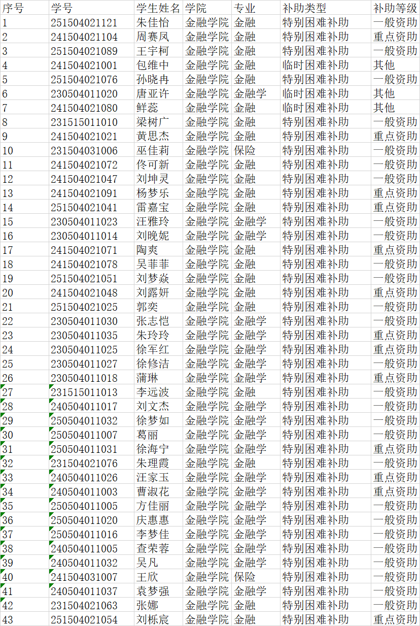 根据我校《关于做好2025年研究生困难补助评定工作的通知》精神,经学生本人申请、学院研究生奖助学金评审委员会初审评定,现将学院2025-2026学年金融学院研究生困难补助名单进行公示,公示期3个工作日(10月13日-10月15日),如有异议,请在公示期内向评审委员会反映。