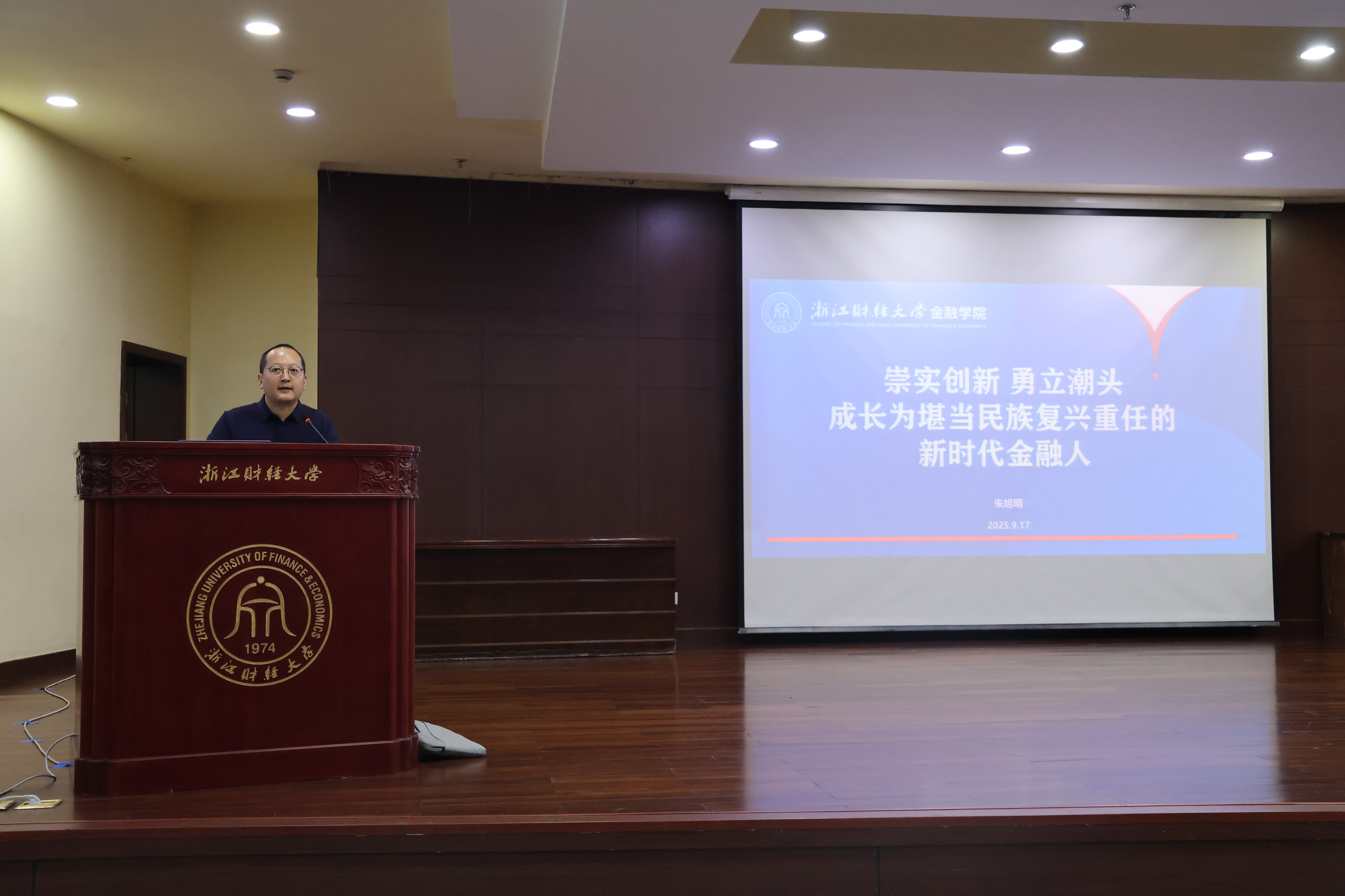 学院党委书记朱旭明以《崇实创新 勇立潮头 成长为堪当民族复兴重任的新时代金融人》为主题讲述书记第一课,面向全院本科和研究生新生开展理想信念与家国情怀教育。他回顾了学院发展历程,明确学院愿景使命,结合优秀校友案例,引导学生树立远大理想,积极向上成长,努力成为具有“崇实”“创新”品质的金融学子。朱书记勉励大家坚定理想信念,早日站在党旗下,要锤炼高尚品格,练就过硬本领,勇于创新实践,做与新时代同向同行的当代青年。这堂党课为新生廓清了思想迷雾,注入了家国情怀,开启了新征程。