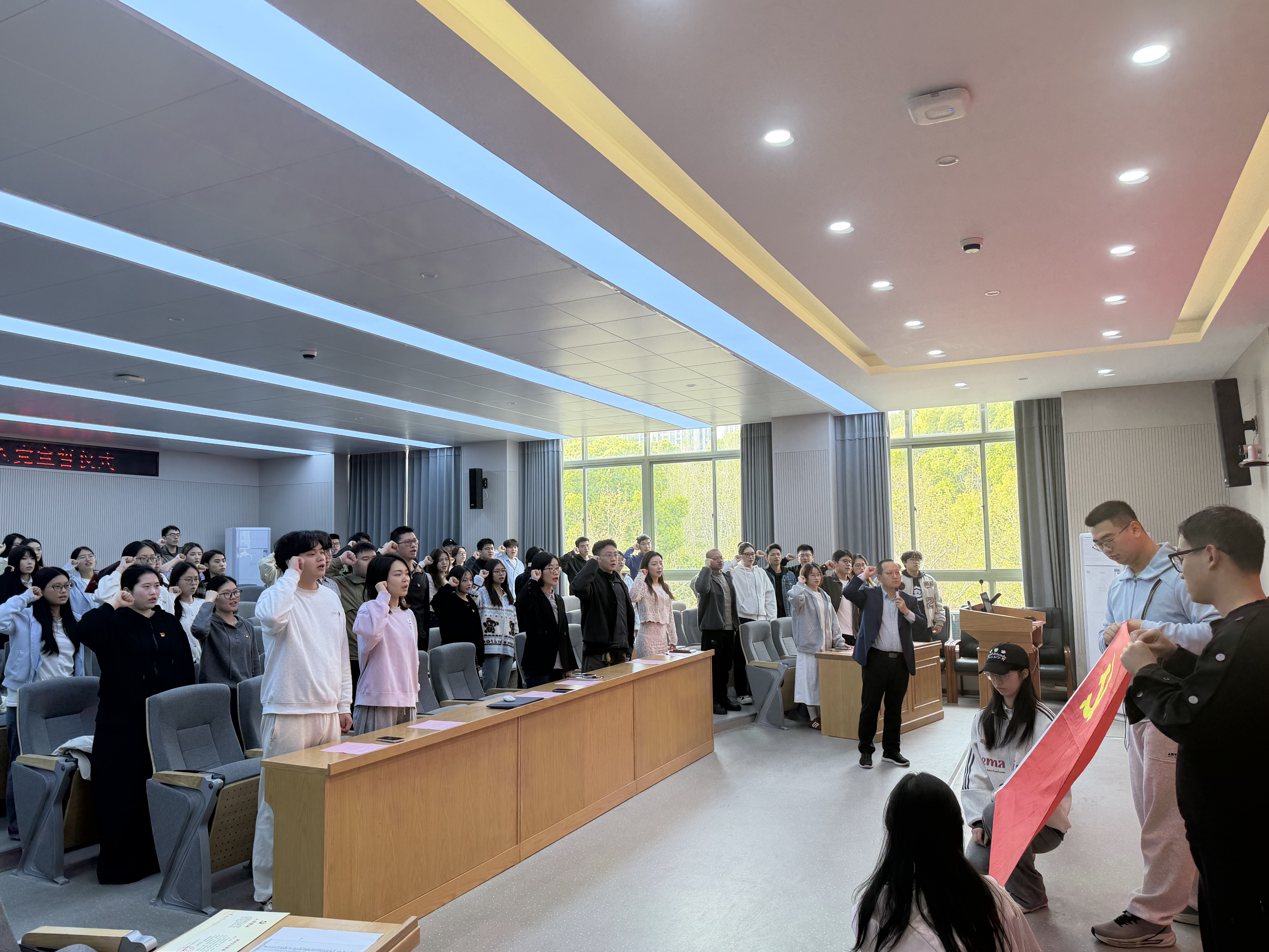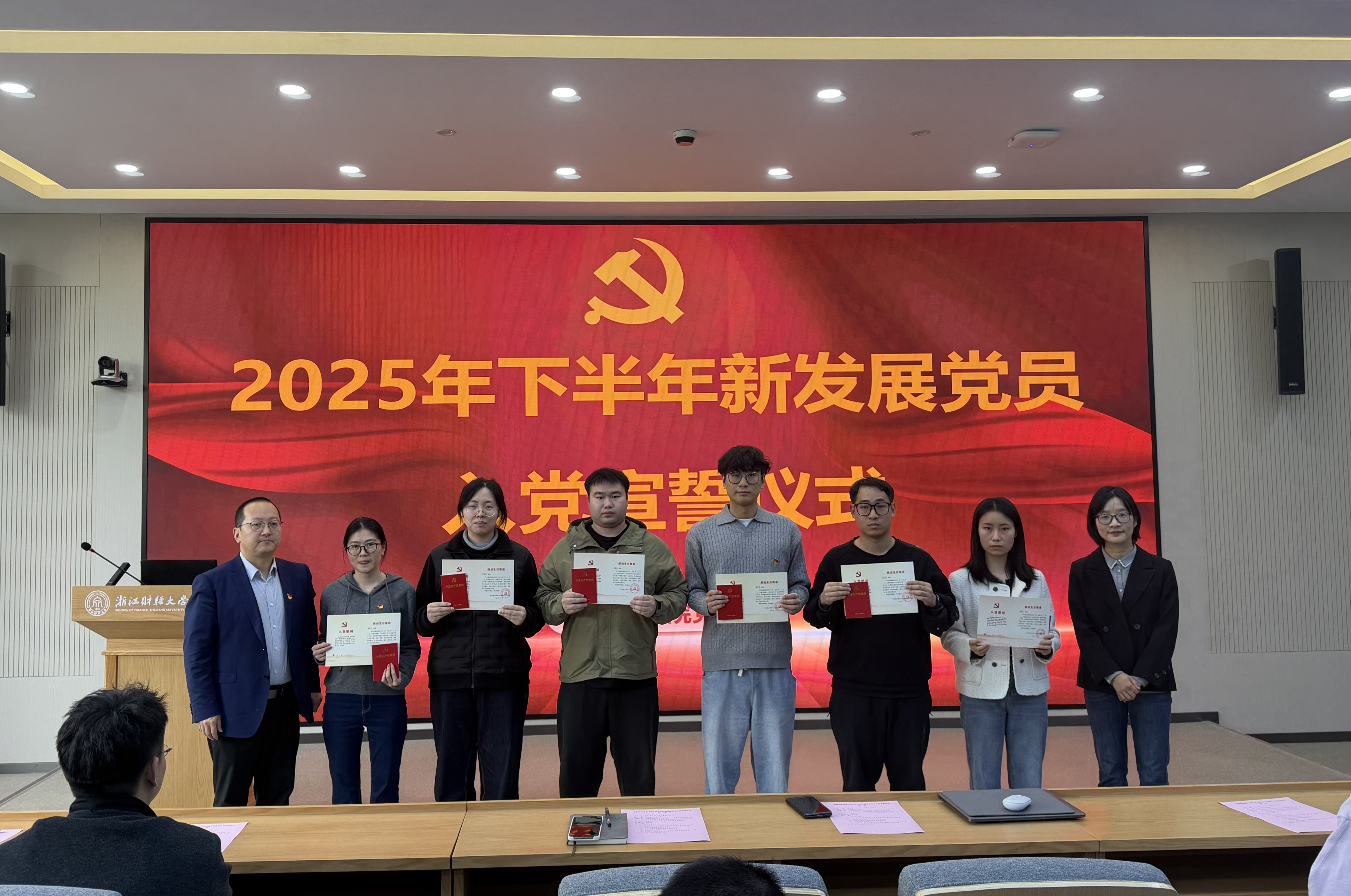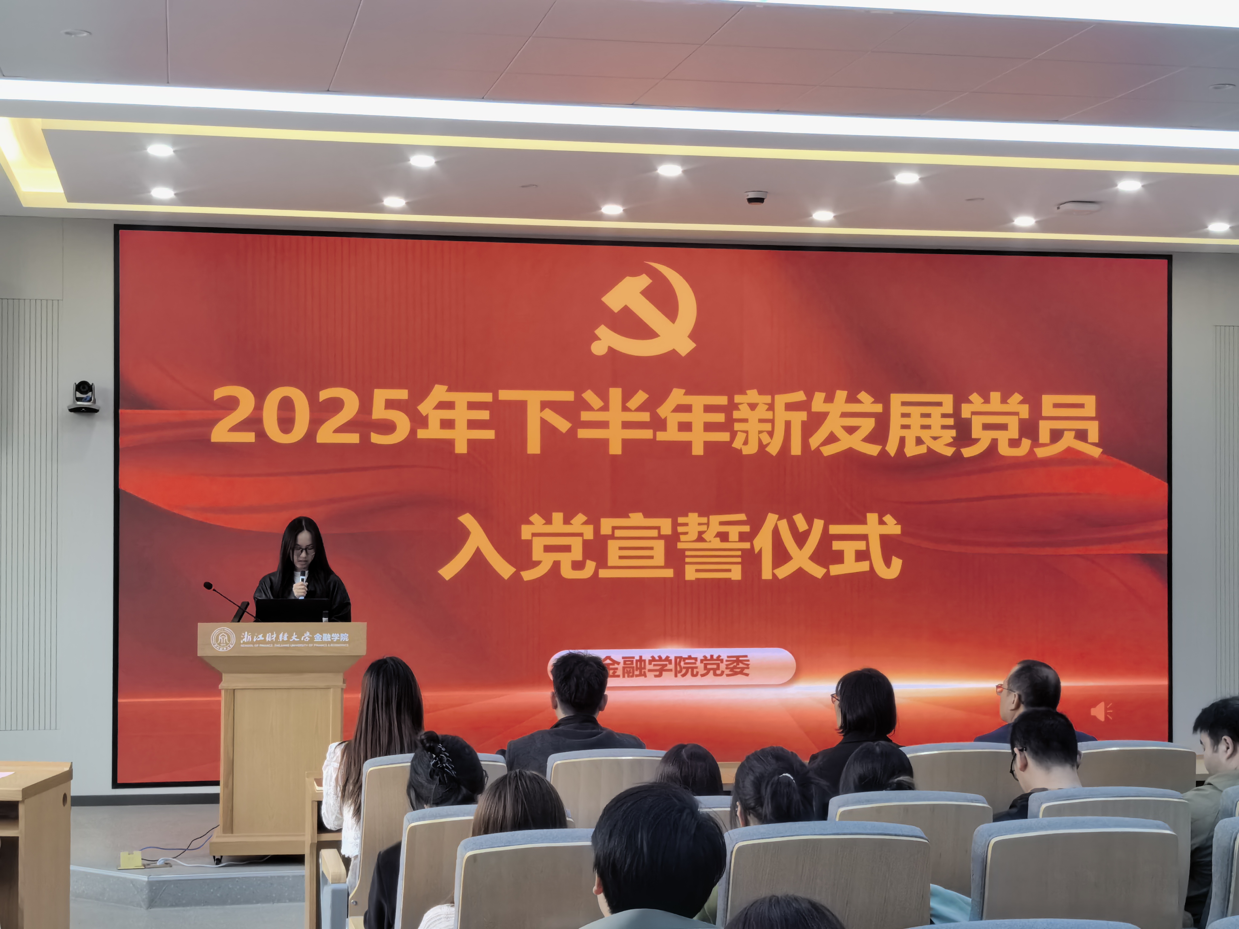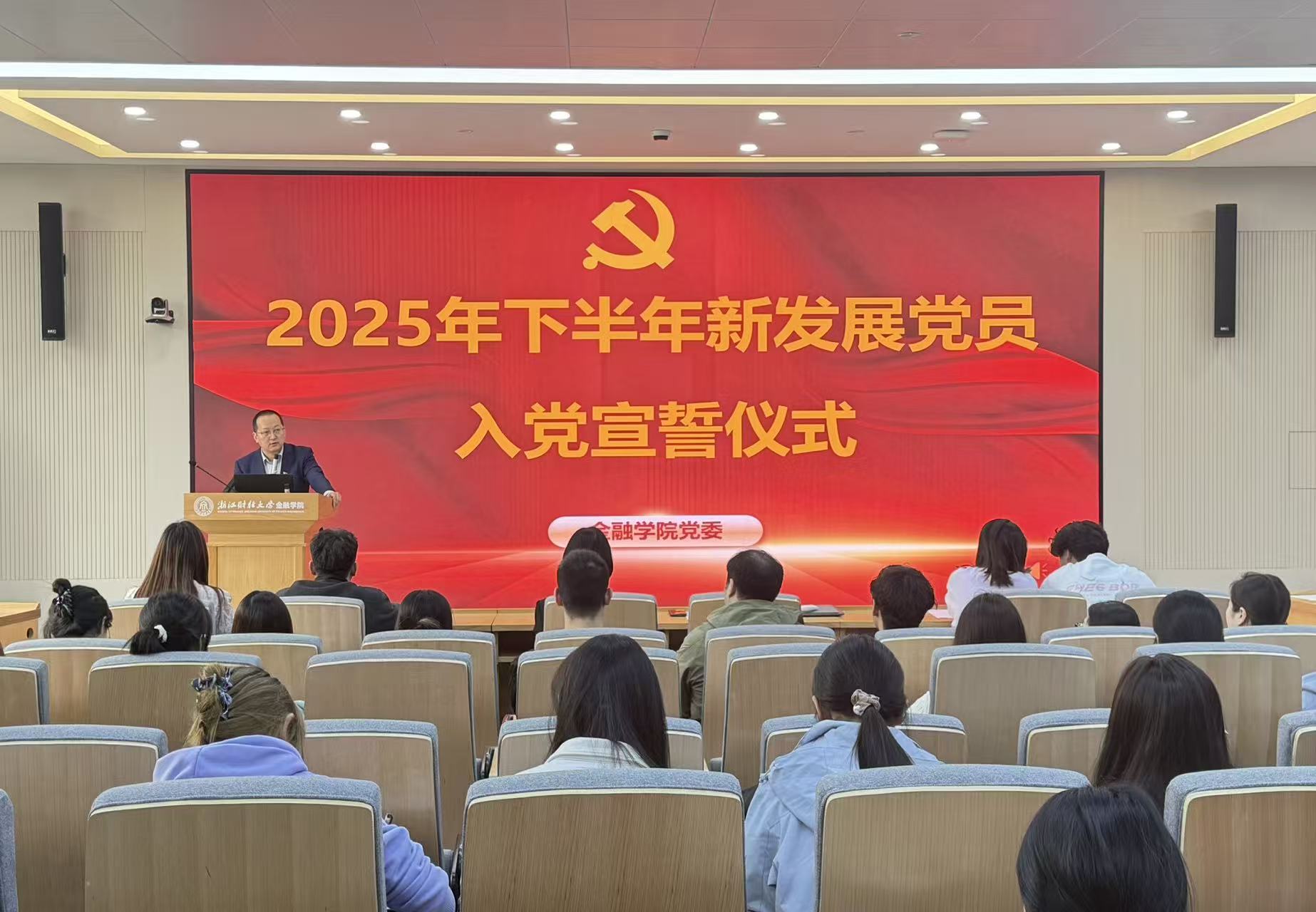 4月2日下午,金融学院党委在学院楼202报告厅举行2025年下半年新发展党员入党宣誓仪式。学院党委书记朱旭明、党委副书记陈思佳、各学生党支部书记和党建指导老师、老党员代表及2025年下半年新发展党员参加了仪式。仪式由专职组织员翟丽媛主持。