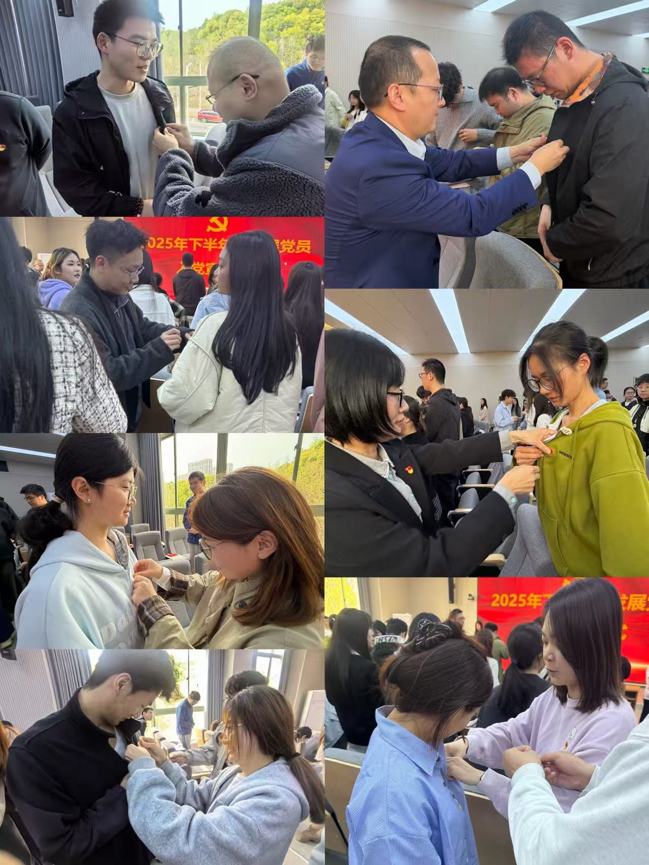 在主持人宣读新发展党员名单后,与会老党员为新党员佩戴党徽,熠熠生辉的党徽不仅是党员身份的象征,更承载着沉甸甸的责任与使命。随后,在朱旭明书记的领誓下,全体党员庄严宣誓,“我志愿加入中国共产党,拥护党的纲领,遵守党的章程……”誓言铿锵有力,信念坚如磐石,传递出全体党员对党忠诚、为共产主义事业奋斗终生的坚定决心。