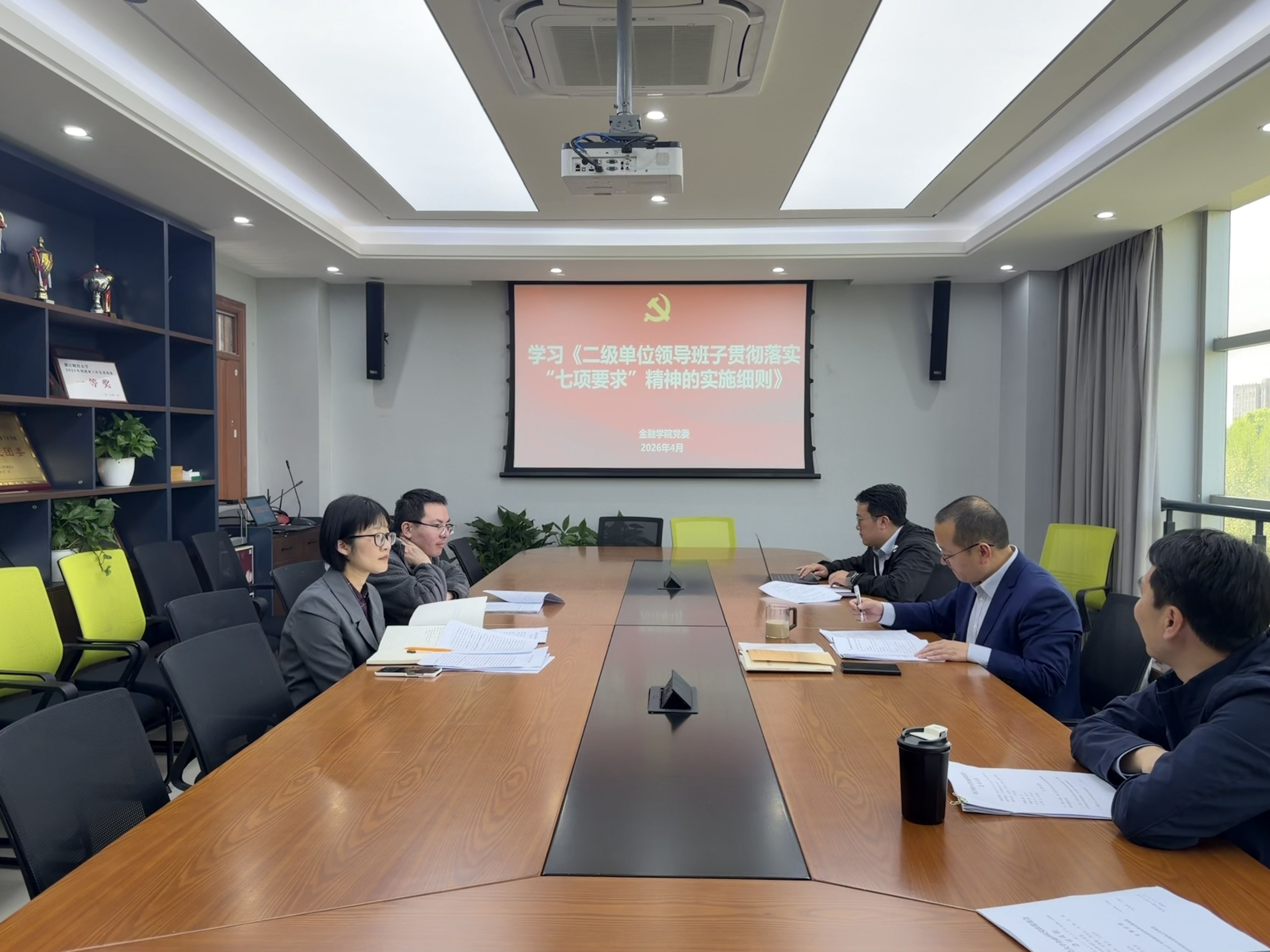 为进一步加强学院领导班子建设,4月7日下午,金融学院党委召开党委理论学习中心组会议,专题学习学校《二级单位领导班子贯彻落实“七项要求”精神的实施细则》(以下简称《实施细则》)。学院党委书记朱旭明主持会议,学院党委理论学习中心组成员参加学习。