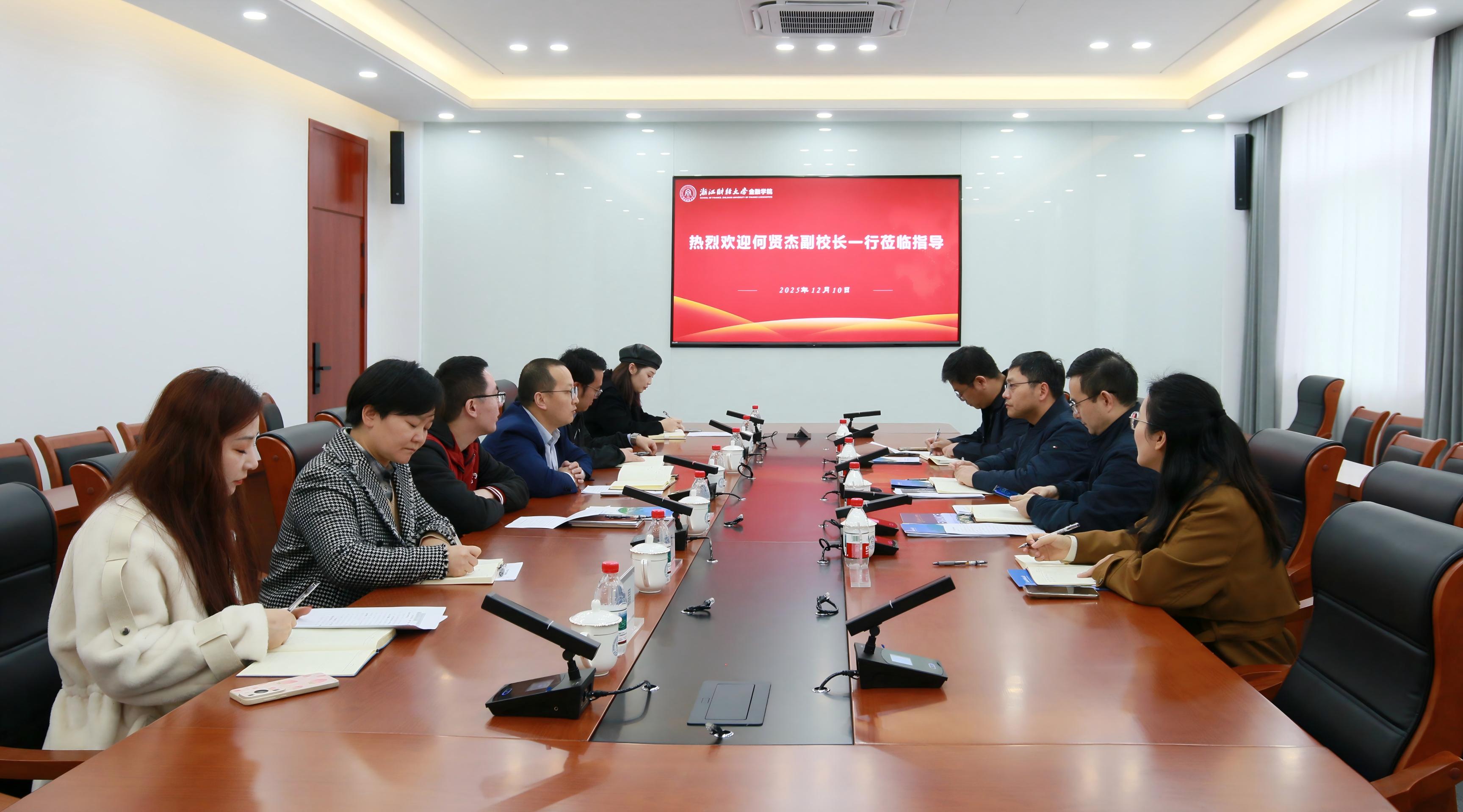 2025年12月5日,浙江科技大学经济学院党委书记刘发明一行来我院调研交流。我院党委书记朱旭明、副院长金骋路热情接待了来访客人,盈阳金融科技学院金融科技系主任龙怀钢、副主任钱嫣虹应邀参会。朱旭明书记对刘发明一行的到访表示热烈欢迎,并详细介绍了我...