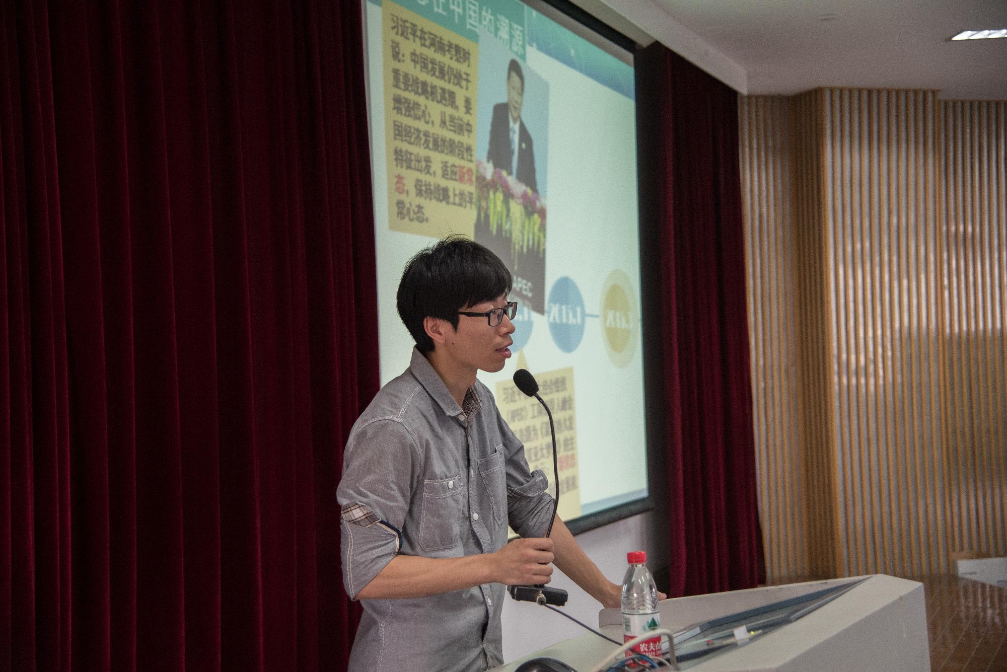 5月19日,金融学院辅导员蒋超与王维维老师分别就深入阐释我国经济发展“新常态”与学习贯彻习近平主席系列重要讲话精神等问题展开讨论,为金融学院大一大二的学生们带来了两节精彩的形势政策课。下午15:00,蒋超老师于A201教室开课。他以中国经济四大困难...